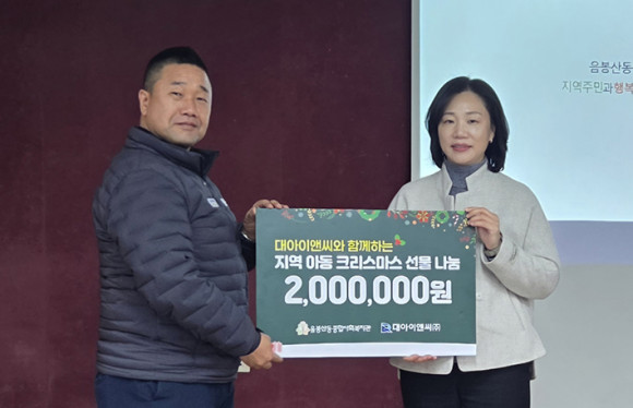 음봉면에 위치한 대아이앤씨(상무 김승한)는 12월 22일(월) 지역사회 아동들을 위한 나눔 실천의 일환으로 음봉산동종합사회복지관(관장 장보윤)에 기부금 200만 원을 전달했다.