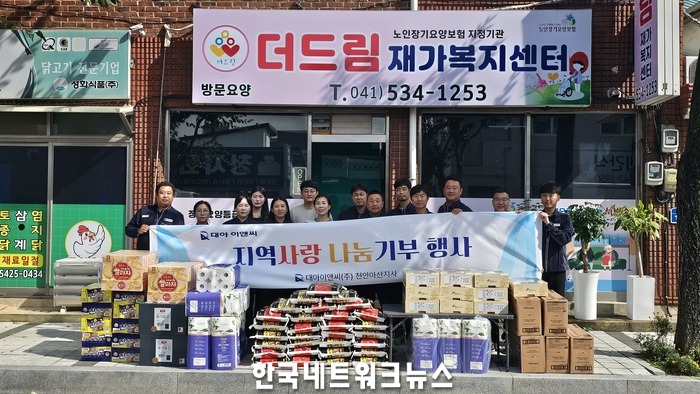 29일 추석 명절을 앞둔 가운데 대아이앤씨(주)가 몸이 불편한 아산시민들을 위해 많은 물품을 더드림 재가복지센터에 기부했다.